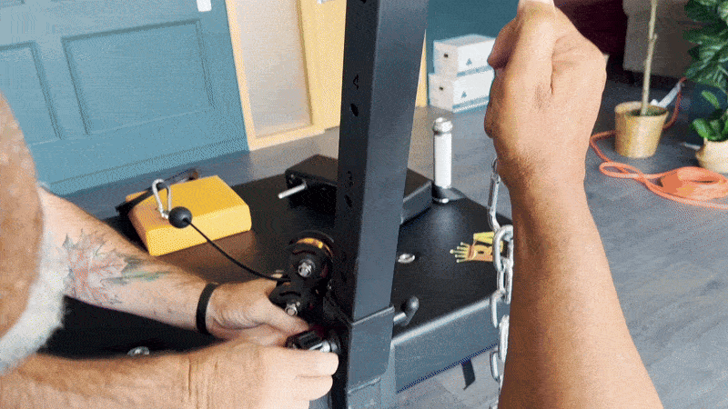 The Adjustable Pulley system comes fully assembled and ready to use right out of the box including a 1” loading pin and D-style handle. The adjustable dual-pulley sleeve attachment is fitted over top of the main tube and allows for a variety of different positions for various exercises. The Adjustable Pulley system can fit almost any armwrestling table, the two table anchor bolts can fit up to a 12cm gap between them and the two under the table bolts secure the pulley to the table top. The Adjustable Pulley system can support an impressive 300lbs.