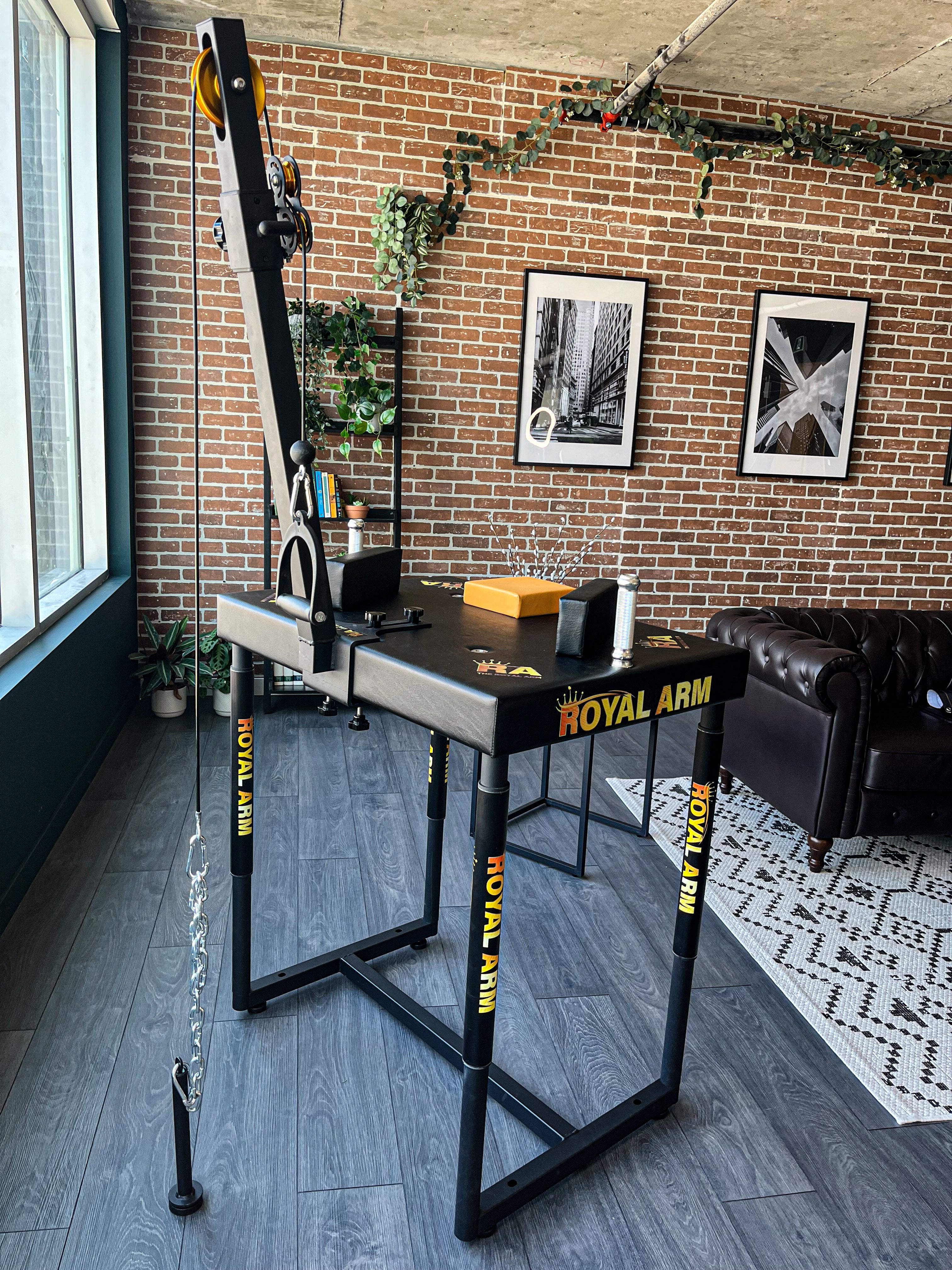 The Supreme Adjustable Pulley is designed to fit onto any table, not just the Supreme Armwrestling Table. The Table Pulley comes with 2 C-Clamps to securely stabilize the pulley system to the table meaning there’s no need to drill any holes. The Supreme Adjustable Pulley has an impressive maximum capacity of 350lbs