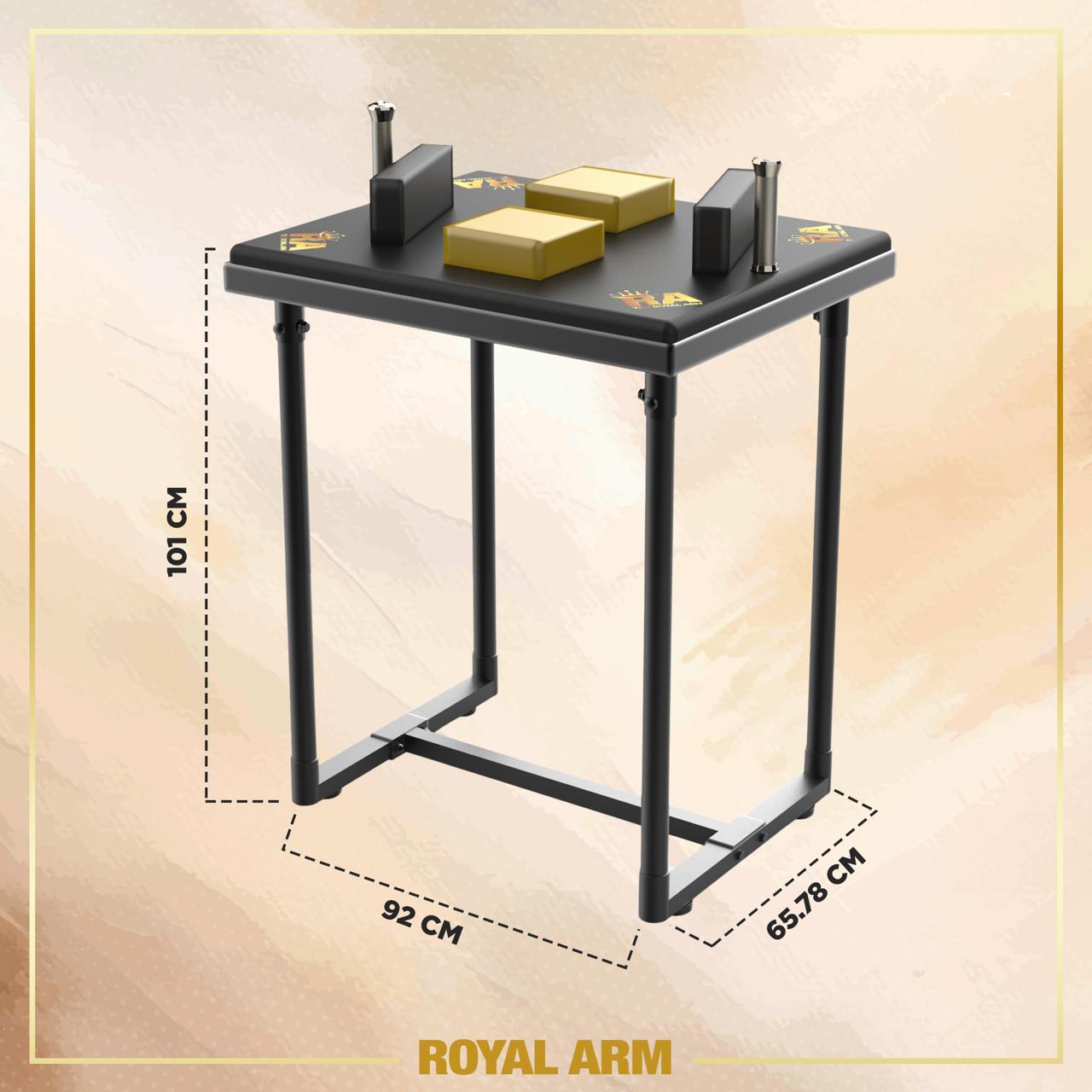 Introducing Royal Arm – Elevate your armwrestling game with Royal Arm's premium equipment. Our Armwrestling Table, crafted with top-quality materials and precision craftsmanship, offers unmatched stability and durability for both beginners and seasoned pros. Pair it with our versatile Adjustable Pulley, designed to enhance your strength training with a wide range of exercises targeting key muscle groups. Together, they provide the ultimate setup to take your armwrestling performance to the next level. Train like a champion with Royal Arm.